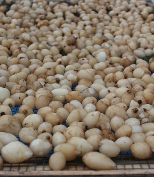 Toprak altında kalan yumrular toplanır. Yumrular yıkanır ve temizlenir. Genellikle su, bazı bölgelerde süt veya ayran ile 10 dakika kadar haşlanmaktadır. Haşlama işlemi salebin tohum özelliğini kaybetmesi içindir. Su haricindeki süt veya ayran ile haşlama salebin raf ömrünü azaltmaktadır. DAHA SONRA kurutma aşamasına geçilir. İpe dizilerek veya sererek güneşte kurutulur. Kuruma süresi hava şartları ve neme bağlı olarak 2-6 ay dır. Bu aşama sonrasında en iyi öğütme şekli geleneksel taş değirmenlerde yapılandır.